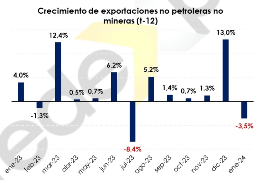 Las exportaciones no petroleras no mineras registraron una contracción en el primer mes de 2024.