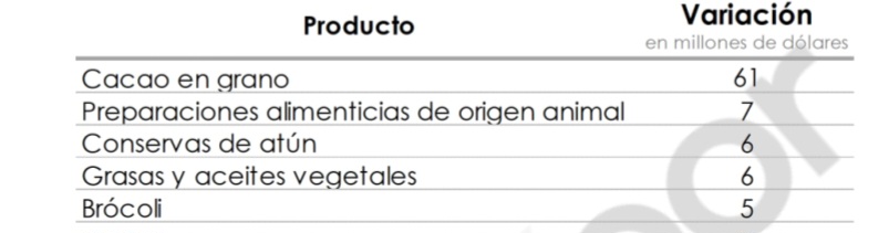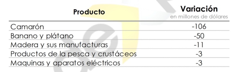 La reducción de exportaciones para el mercado chino se explica por menores ventas de camarón y madera y elaborados, mientras que la reducción de exportaciones a la Unión Europea se explica por una menor venta de banano y plátano, flores y camarón.