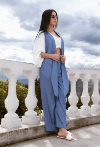 Elige un vestido largo con caída suave o un conjunto con pantalón ancho y un top elegante. Usa tacones, una cartera pequeña de mano y accesorios sencillos para darle el toque final a un look romántico y con estilo.